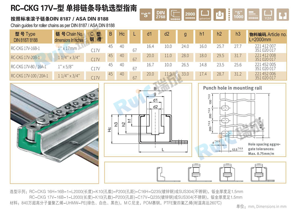 • RC-CKG 17V-型 單排鏈條導軌