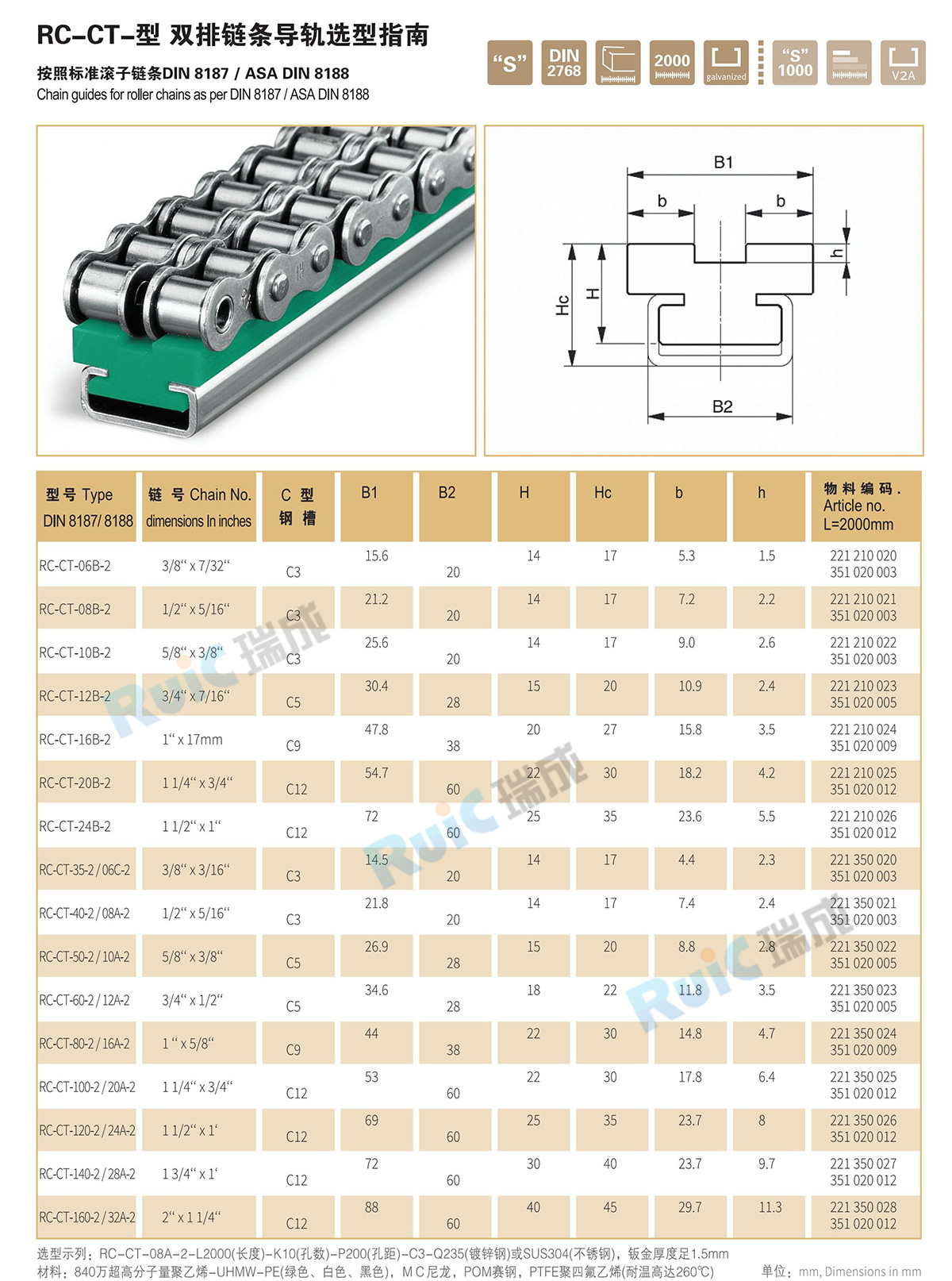 鏈條導軌-鏈條導向件,是一種靜壓導軌,用于支撐和導向鏈條,減少鏈條磨擦,降低噪音,增強鏈條使用壽命。采用840萬超高分子量聚乙烯(UHMW-PE)生產,鏈條導軌具有高耐磨耐溫,抗腐蝕,穩固,降噪音等高精度的支撐與導向。