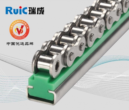 其中,超高分子量聚乙烯極高的分子量賦予瑞成工業鏈條導軌優異的使用性能。這一材料屬于性能優良的熱塑性工程塑料,幾乎集中了各種塑料的優點,具有普通聚乙烯和其它工程塑料無可比擬的耐磨、耐沖擊、自潤滑、耐腐蝕、吸收沖擊能、耐低溫、不易粘附、不易吸水、密度較小等綜合性能。基于它所研發生產的鏈條導軌,可用于支撐和導向鏈條、減少鏈條摩擦、降低噪音、增強鏈條的使用壽命,廣泛應用于每一個行業的傳動鏈,皮帶或鏈條驅動裝置或產品傳輸。