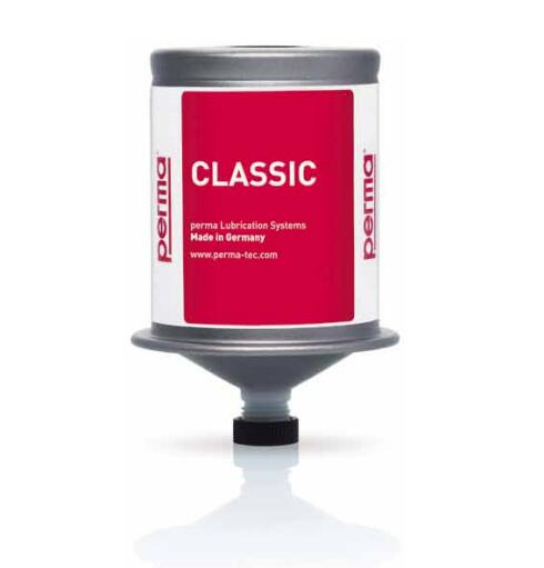 perma CLASSIC 可在 0 °C - +40 °C 的環境溫度下使用,其基于電化學反應的工作原理 安全可靠。其潤滑周期取決于按顏色編碼的激活螺帽。根據應用的具體需求,您可以 分別選擇在 1、3、6 或 12 個月內排完 120 cm3 潤滑油。由激活螺帽產生的壓力(最 大 4 bar)可推動活塞向前移動,這樣就可以持續不斷地將潤滑油一點一點地注入潤滑 點。perma CLASSIC 還能完全防塵和防水,并能承受撞擊和意外碰撞。